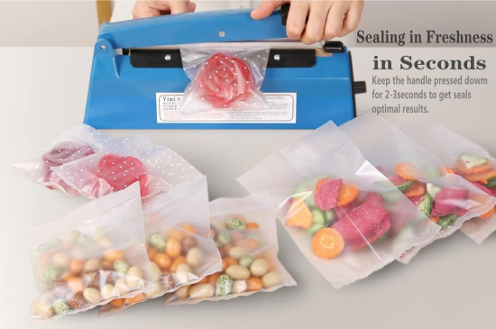 Energy Conservation Manual Impulse Sealer,Non-Toxic, Odorless, Durable, Reinforced and Compression,could seal more than 10000 bags.When seal is done, the red light will go off. Keep the handle pressed down for 2-3.5 seconds to get seals optimal results.Otherwise the sealing place will be not smooth.