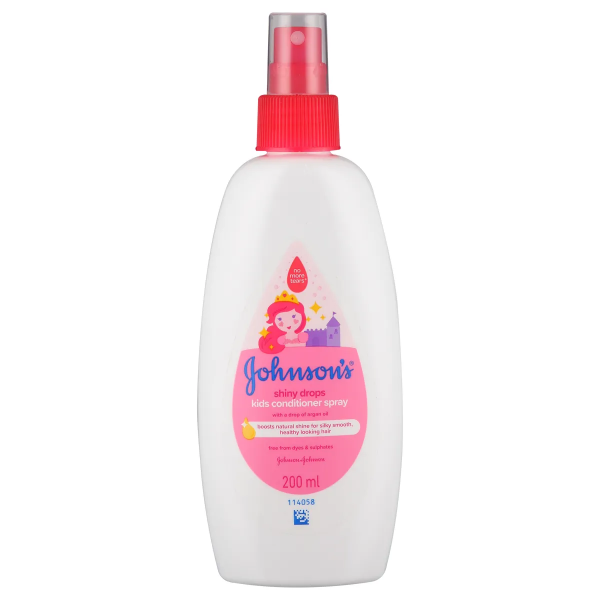 The Johnson’s Shiny Drops Kids Conditioner Spray 200ml is specially formulated for kids to enhance the natural shine of their hair. Enriched with argan oil and a touch of silk protein, it helps to leave hair feeling silky smooth, soft, and looking healthy. This product is hypoallergenic and has been tested by pediatricians and dermatologists. It is free from dyes and sulphates and features the gentle No More Tears formula, which is as kind to the eyes as pure water. Instructions: Cover the eyes, spray on wet hair and gently comb.