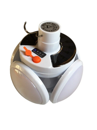 Fold able ball solar light with a hook .Suitable for patios,garden and indoor.Easy to use and self recharge in the sun.Solution to power cuts and load shedding. Has a USB port for gadget recharging.