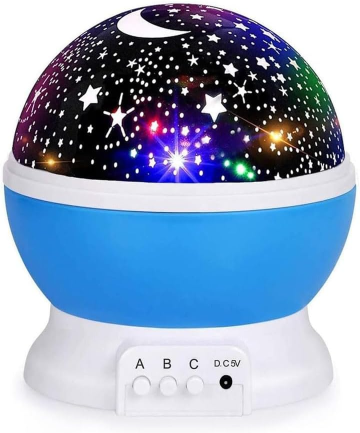 There are 3 buttons on our baby lights projector. 【A】 is the switch for night light mode, 【B】 is the switch for color projection,【C】 is the switch for rotation mode. Meet the basic functions of night light projector for kids. It can be easily used by both kids and parents. Calming kids anxiety about being alone, and providing convenience for parents to take care baby at night.