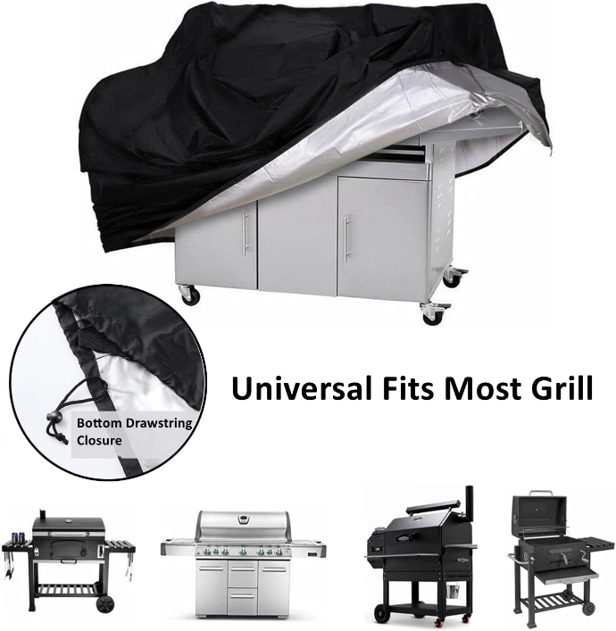 The cover measured 170cm x 61cm x 117cm ( not the dimensions of the grill itself ), making it suitable for use with most grills that have a length of up to 165cm. The bottom drawstring closure allows to adjust snug fits for different grills.